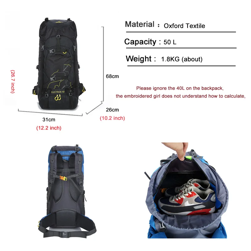 Product Name: 旅行やスポーツ用のバックパック,ハイキング,登山用のポケット,狩猟,屋外用,純粋な色,60l,新品